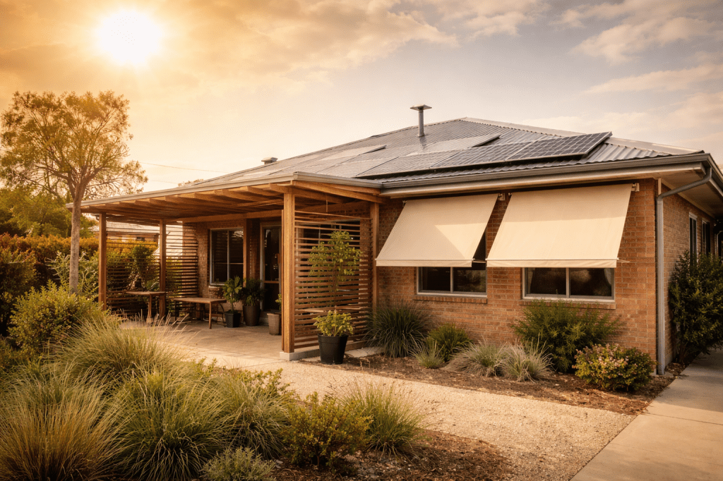 In many Australian homes, single glazing is still common. While replacing windows can help, it is often expensive and disruptive. External shutters, awnings and adjustable screens can achieve significant performance gains at a fraction of the cost, particularly when combined with curtains or internal blinds.